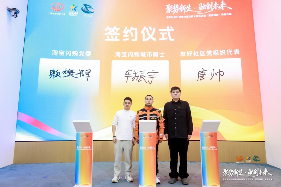 仪式后,奇富科技、淘宝闪购、嘉银科技、万杰环境、上海青创等区重点企业、社会组织党组织负责人开展2025年普陀区重点新经济组织、新社会组织述评会,以“述”亮绩、以“评”促干,进一步凝聚新兴领域党建协同创新合力。普陀区委社会工作部部长、区非公有制经济组织和社会组织工作党委书记徐军传达十一届区委十一次全会精神,并表示2026年区委社会工作部将搭建更多协同创新载体,推动新兴领域党建进一步提质增效。与此同时,半马苏河沿岸“团团暖新”青春市集同步开展。